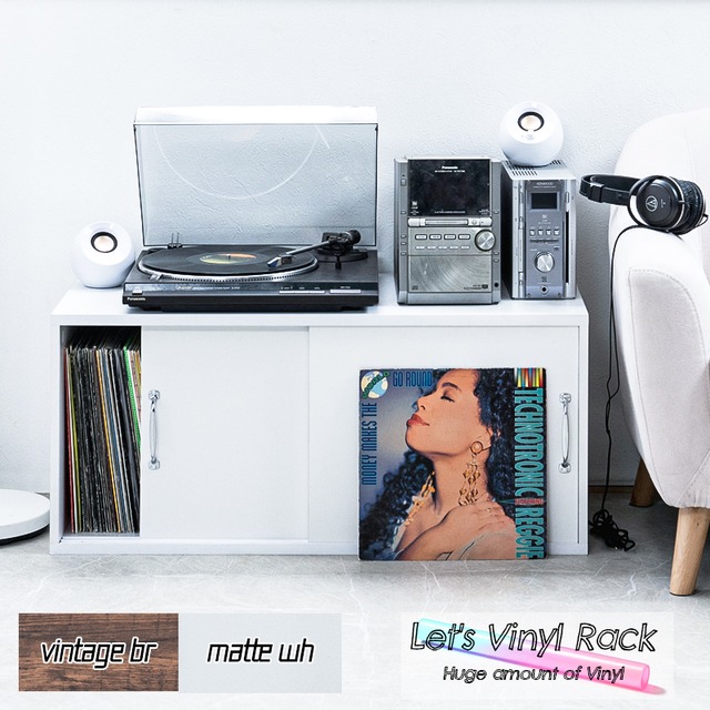 キャビネット 上置き レコードラック 引戸式 レコード収納 レコード棚 lp 木製 ターンテーブル 台 レコードプレーヤー台 ホワイト ブラウン whitv