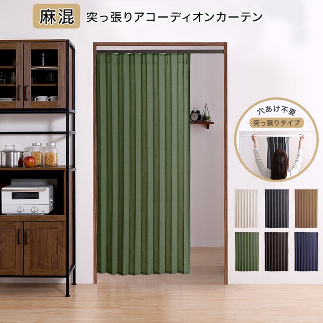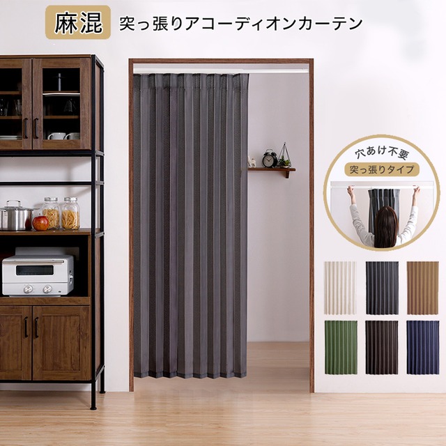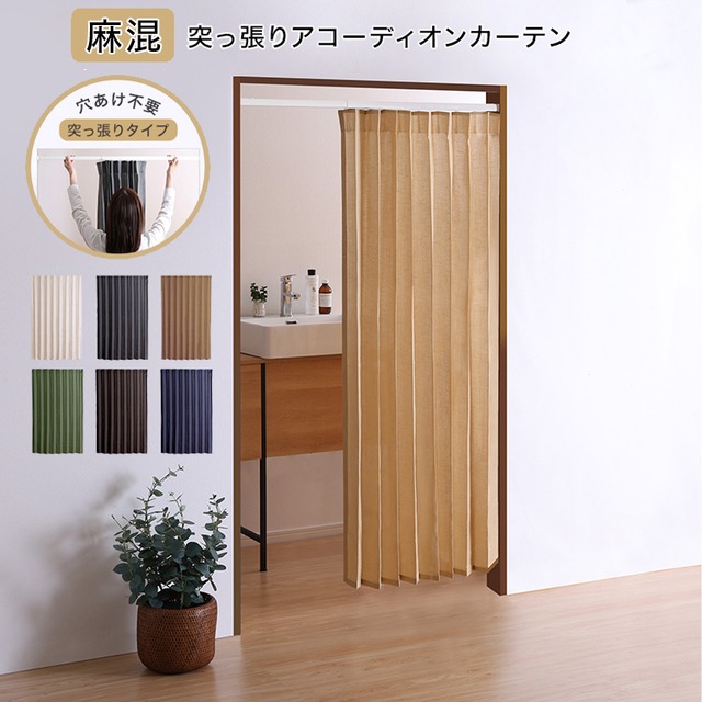 アコーディオンカーテン 100×174cm 簡単取り付け つっぱり式 麻混仕様 ファブリック 賃貸OK レールが選べる