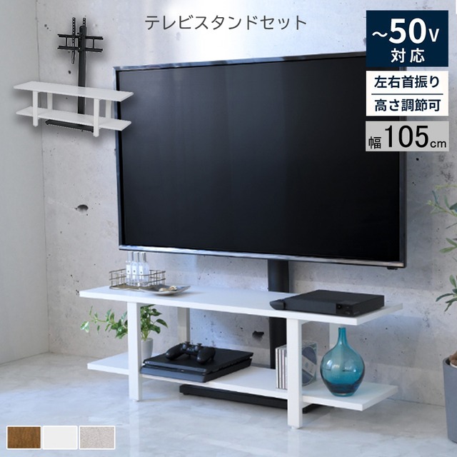 テレビスタンド ラックセット テレビ台 壁掛け風 壁寄せ 収納付き 幅105cm首振り 配線隠し 高さ調整 角度調整 収納 32 〜 50 インチ対応 薄型 RNOU