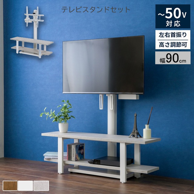 テレビスタンド ラックセット テレビ台 壁掛け風 壁寄せ 収納付き 幅90cm首振り 配線隠し 高さ調整 角度調整 収納 32 〜 50 インチ対応 薄型 RNOU