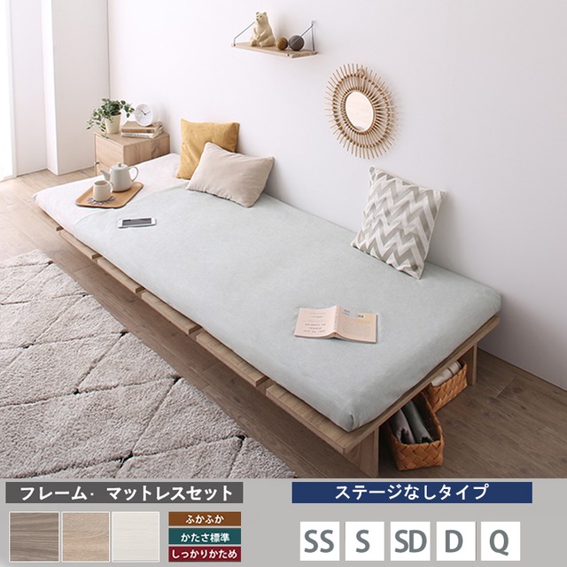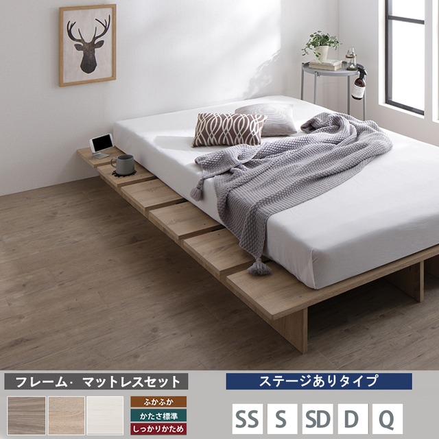 ベッド スプリング マットレス付 ベストセラーモデル 標準 セミダブル ステージあり 天然木調 すのこ ローベッド フロアベッド ヘッドレス おしゃれ KSN FLAT