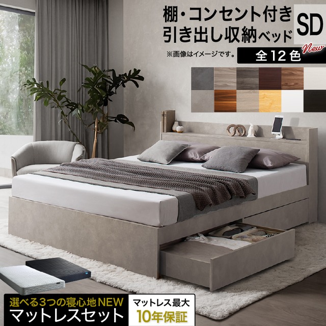 組立設置あり ベッド フレームのみ セミダブル 宮付 棚コンセント付き 引き出し収納 EVRX ロール式すのこ ベッド 敷布団