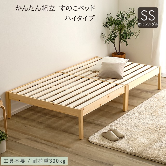 ベッド すのこ 天然木 ハイタイプ かんたん組立 (セミシングルショート) ナチュラル 頑丈 通気性 TRS