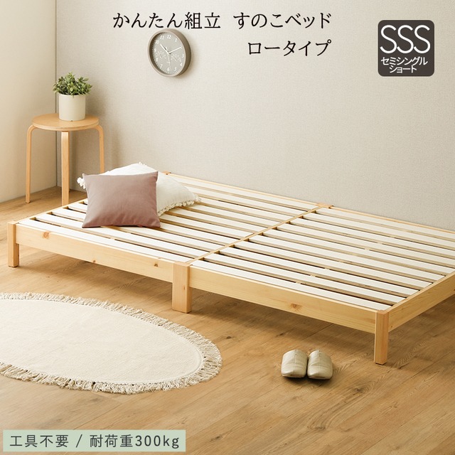 ベッド すのこ 天然木 ロータイプ かんたん組立 (セミシングルショート) ナチュラル 頑丈 通気性 TRS