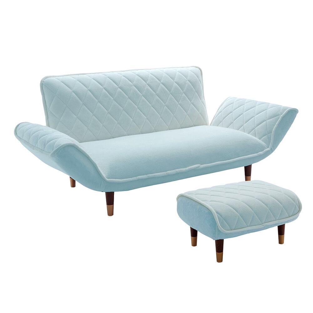 カウチソファーとオットマンセット 2人掛け ダイヤモンドキルト リクライニング コイルスプリング おとなかわいい 2P 脚取外し