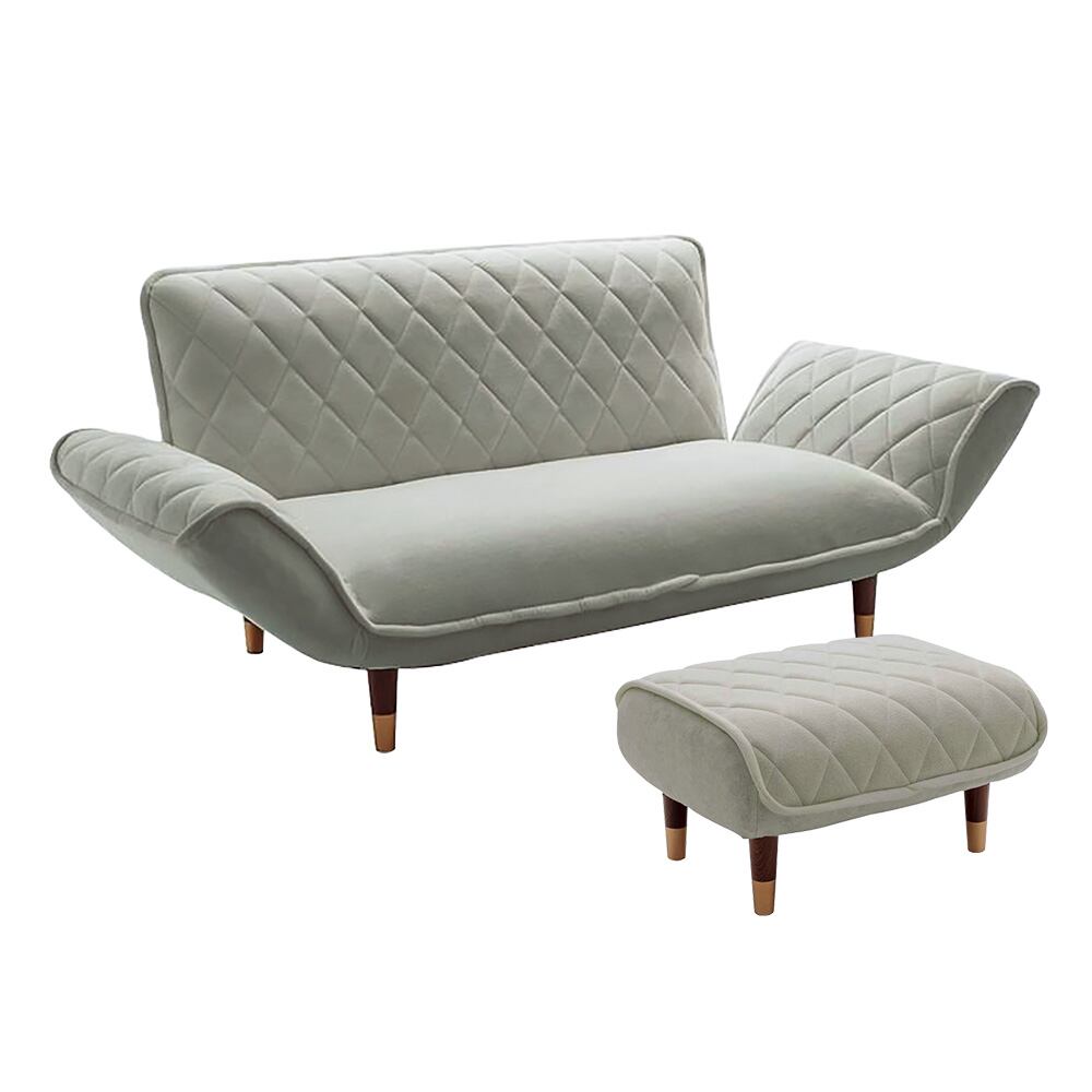 ソファの背もたれとひじ掛け、オットマン座面のダイヤモンドキルトがおしゃれで高級感のある雰囲気を演出します。