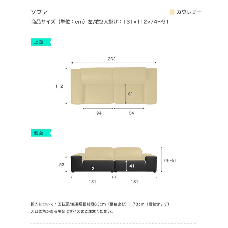 ソファ 4人掛け 本革カウレザー 幅262cm ブラック色 黒色 ローソファ