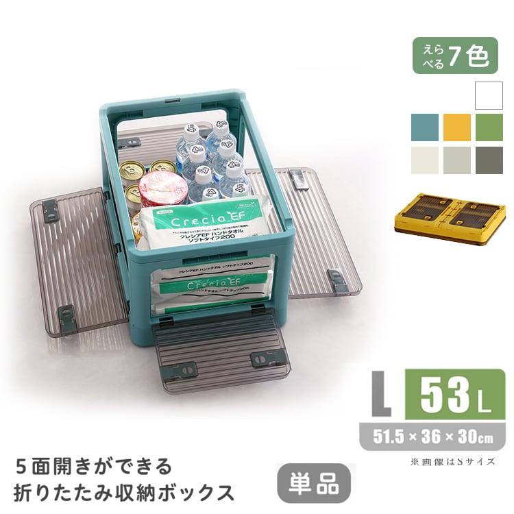 収納ボックス Lサイズ (53L) 折りたたみ スタッキング可能 上左右前後から開閉出来る