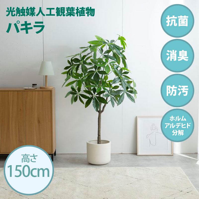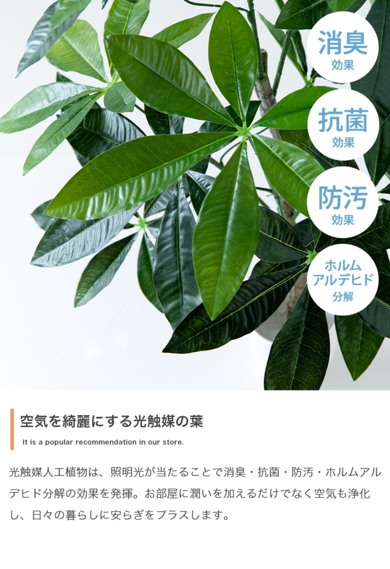 光触媒人工観葉植物 fake green パキラ (約)幅65cm×奥行45cm×高さ150cm 照明光で消臭・抗菌・防汚・ホルムアルデヒド分解の効果を発揮 フェイクグリーン