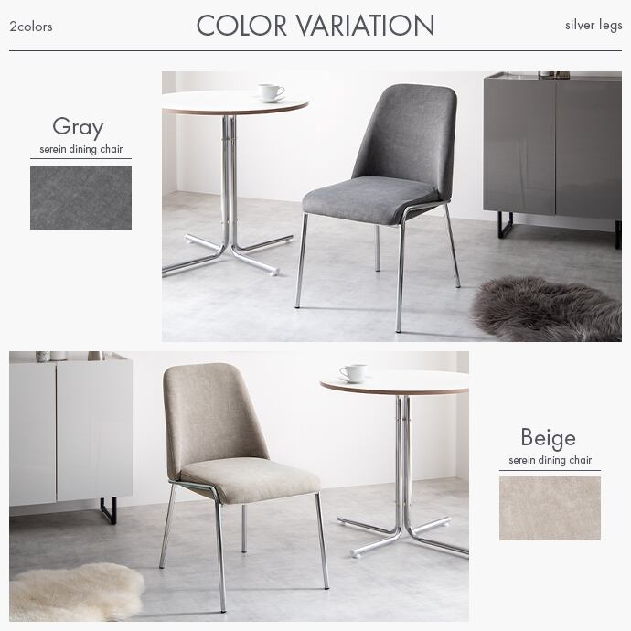 しっとりとした上質なファブリック生地×シルバー脚が洗練された雰囲気を与えるダイニングチェア。