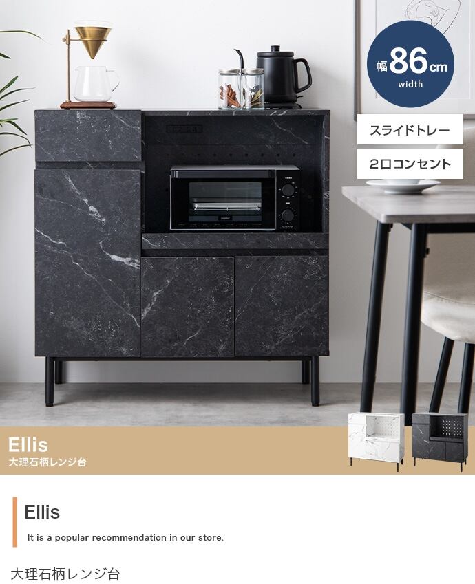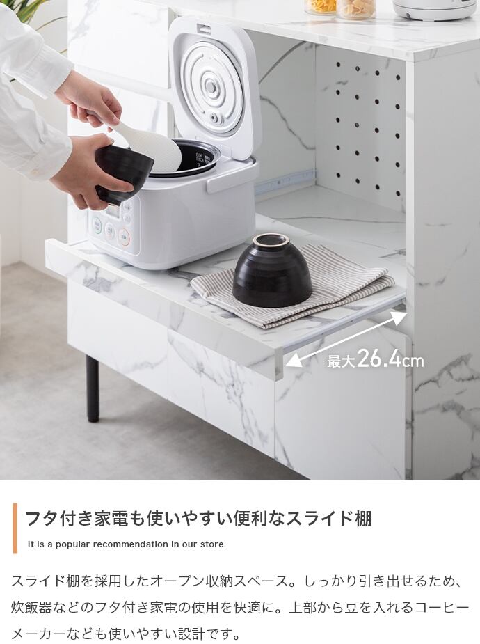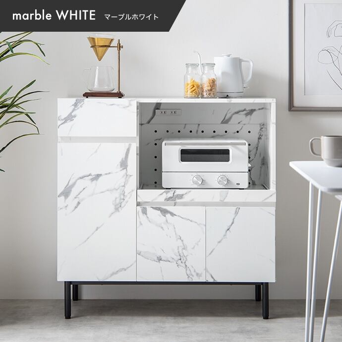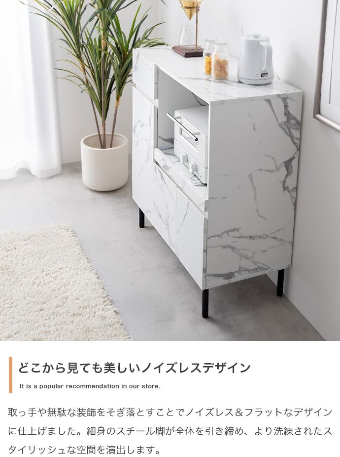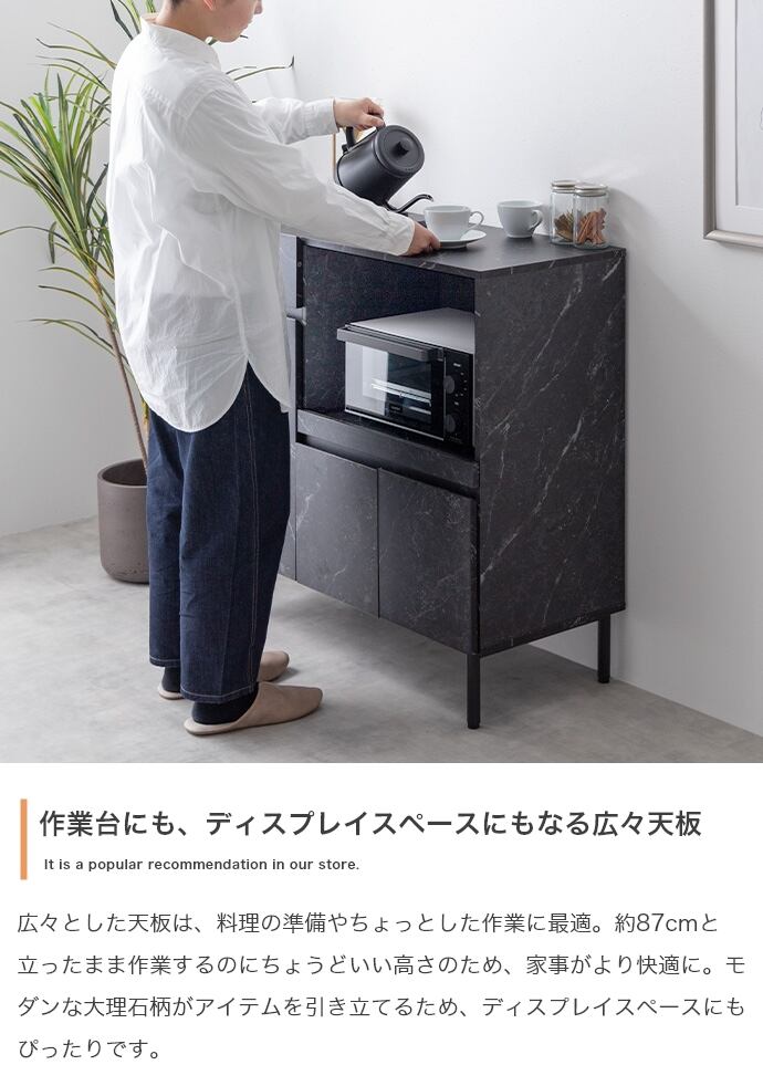 キッチンカウンター ERIS 86cm幅 レンジ台 レンジ台 大理石柄 キッチン収納 カップボード 食器棚 おしゃれ ダイニングボード 組み立て品
