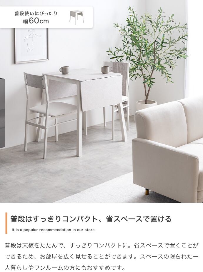ダイニング3点セット SEEM 伸張式 ホワイト ストーン (全2色) 両サイド跳ね上げ式 コンパクト チェア2脚付き