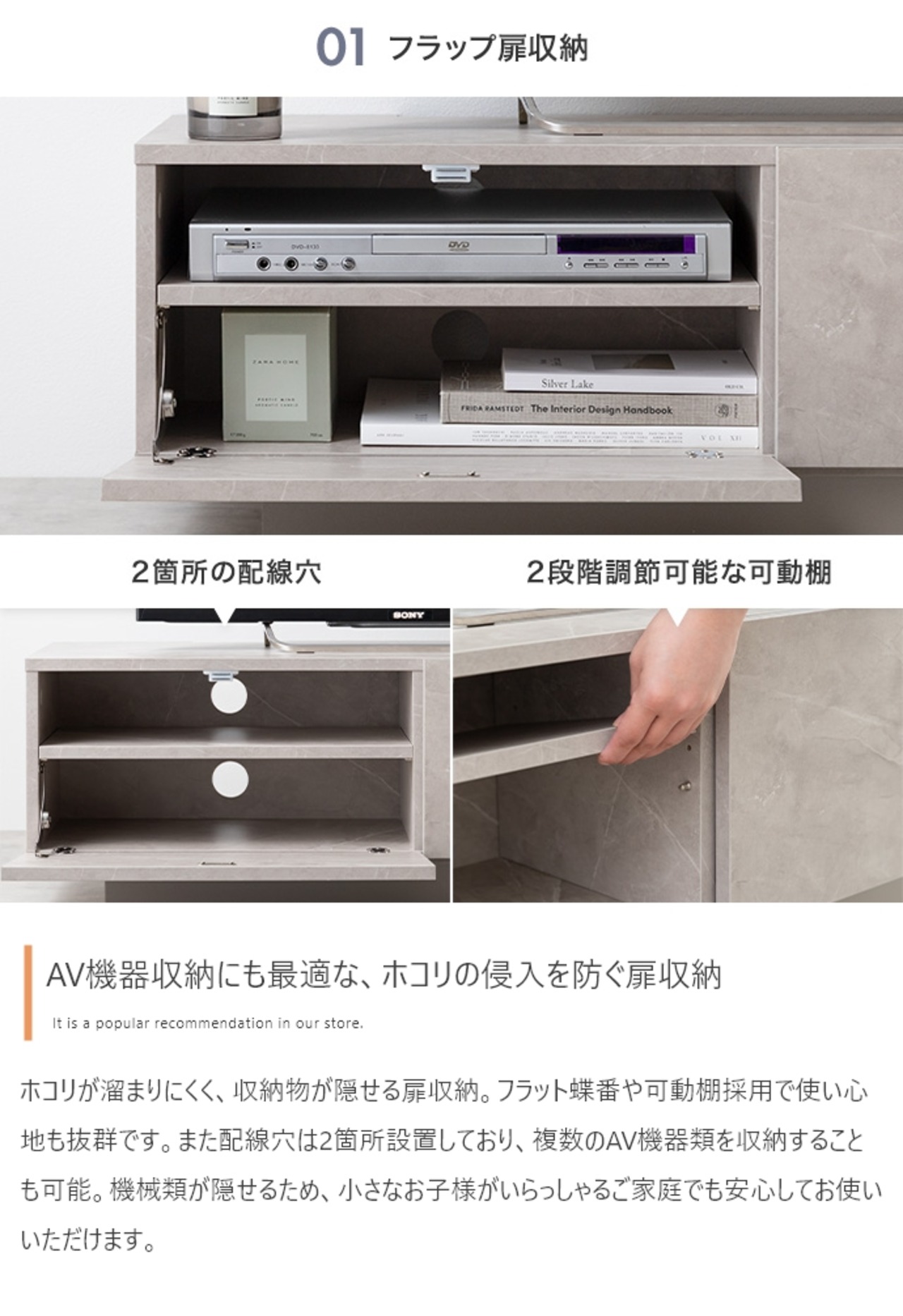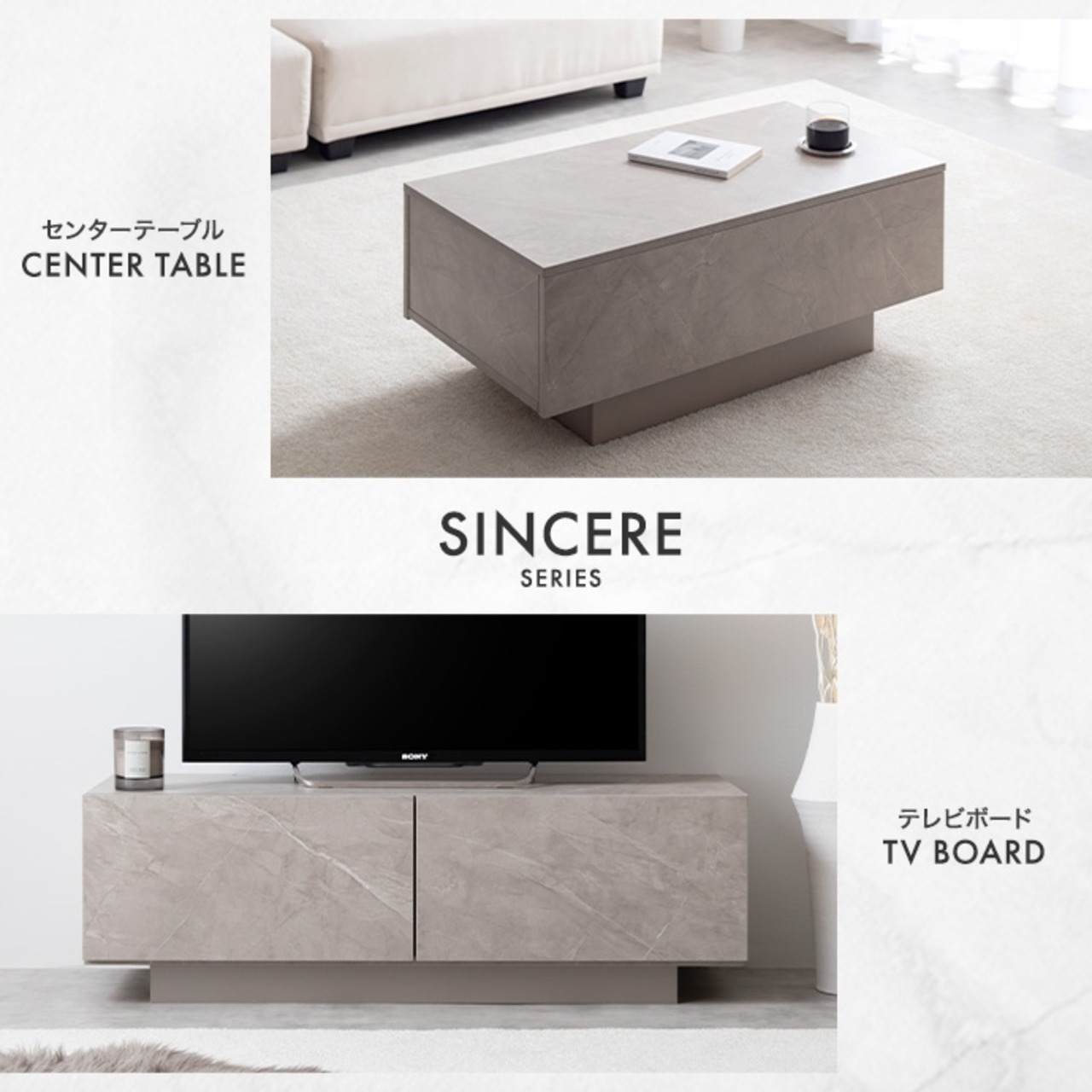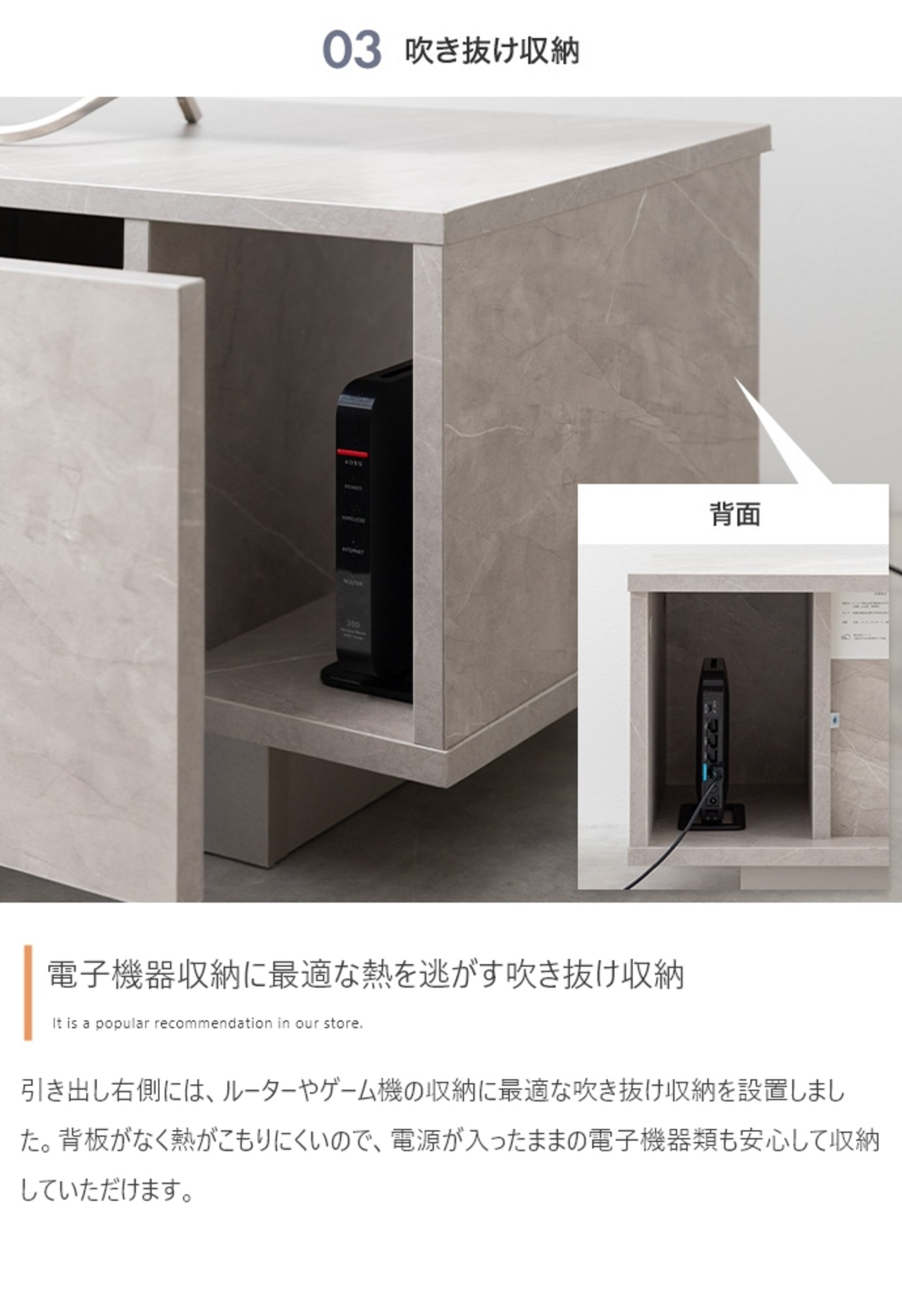 ストーン柄のニュアンスが上質な空間を作る 引き出し付きテレビ台。