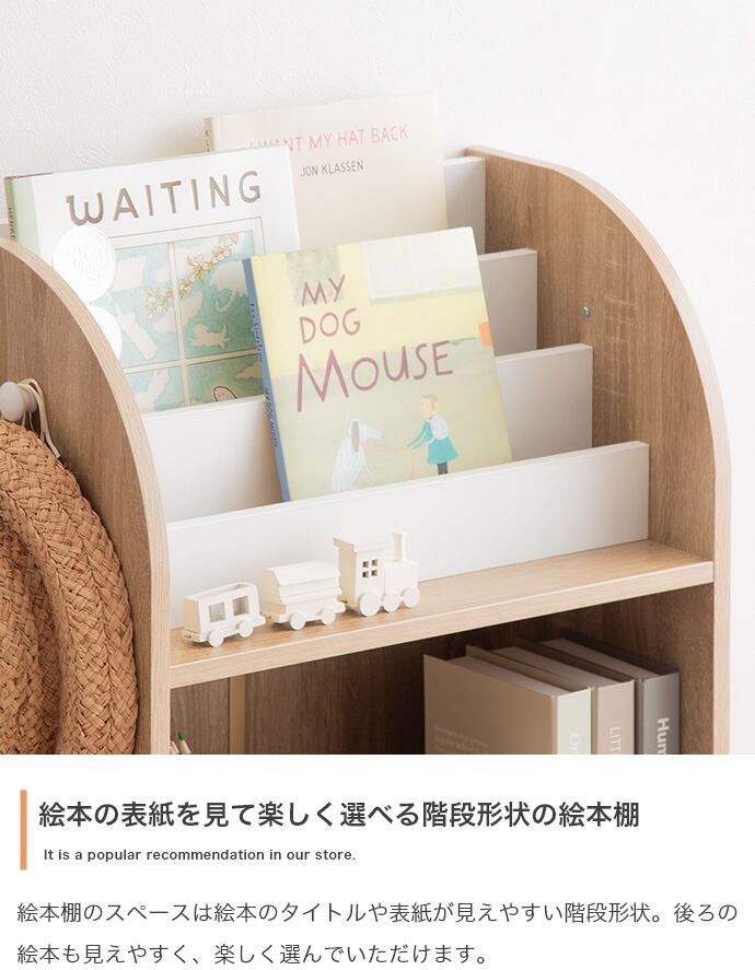 お子様のおもちゃや絵本をまとめてスッキリ収納可能なスリム絵本棚。