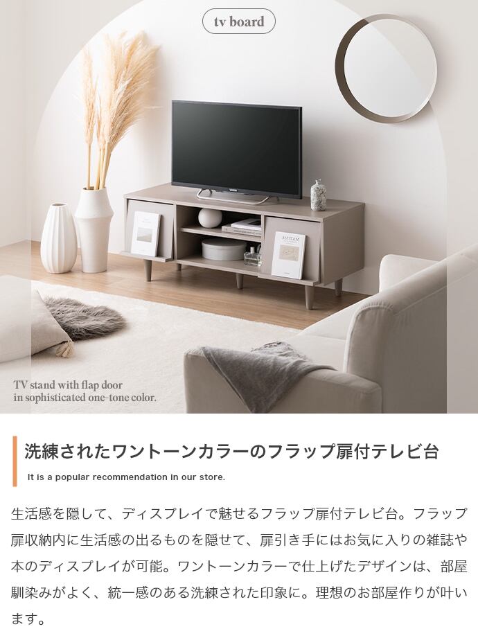 テレビ台 テレビボード CARU 110cm幅 組み立て品 ホワイト色 グレージュ色 フラップ扉 ローボード ロータイプテレビ台 北欧