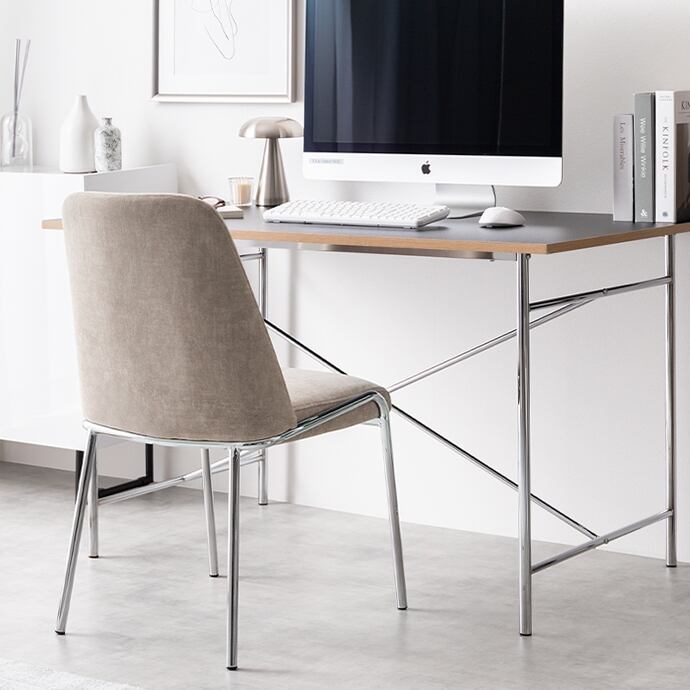 しっとりとした上質なファブリック生地×シルバー脚が洗練された雰囲気を与えるダイニングチェア。