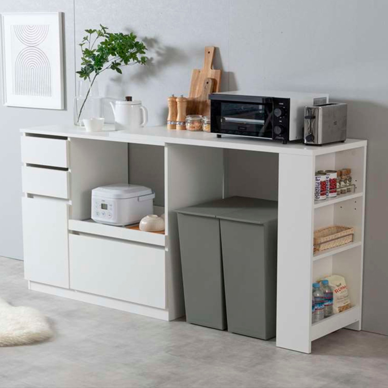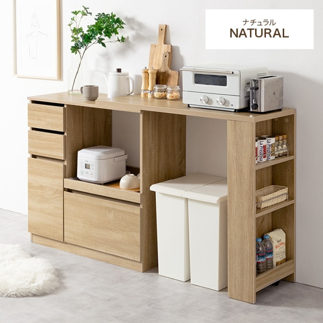 キッチンカウンター 伸縮式 RASH 食器棚 幅 80 cm 幅100から154.5cm×奥行39.4cm×高さ87.5cm スリム カウンター ダイニングボード カップボードレンジ台