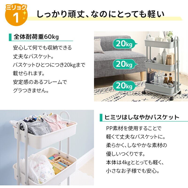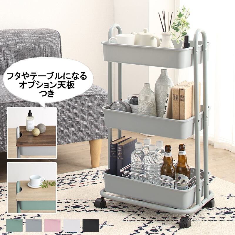 ワゴン ふた 天板1枚付き キッチンワゴン サイドテーブル バスケットトローリー ランドセルラック おもちゃ箱 キャスター付き 北欧 すきま収納