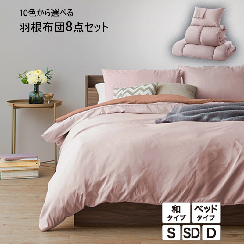 羽根布団8点セットNACE 和タイプ シングル8点セット 無地 ニュアンスカラー 敷き布団セット