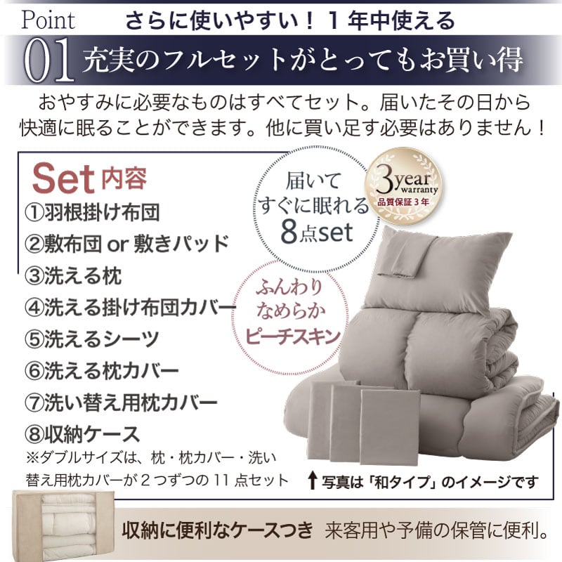 敷き布団付きをご希望の方は、「和タイプ」をお選びください。