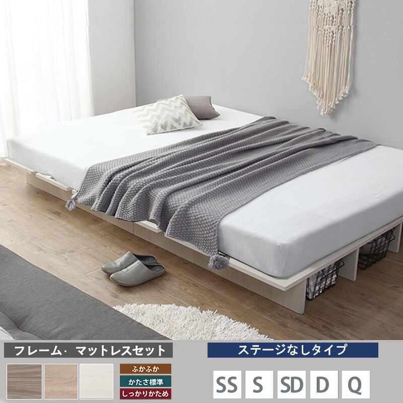 ベッド スプリング マットレス付 ベストセラーモデル 標準 セミダブル ステージなし 天然木調 すのこ ローベッド フロアベッド ヘッドレス おしゃれ KSN FLAT