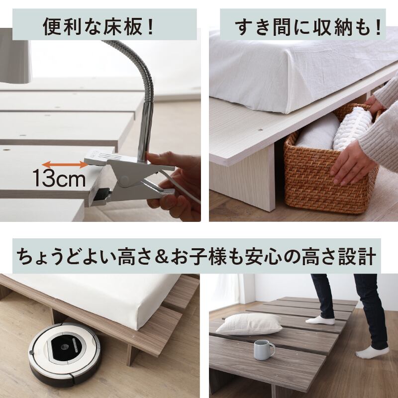 ベッド スプリング マットレス付 ベストセラーモデル 標準 クイーン(フレームはSS+SS) ステージあり 天然木調 すのこ ローベッド フロアベッド ヘッドレス おしゃれ KSN FLAT