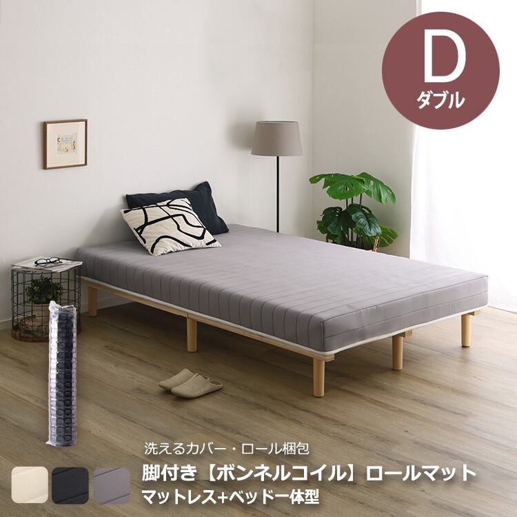 ベッド 脚付きマットレスベッド ボンネルコイルマットレス ダブル SPIM 硬め 全3色 すのこベッド一体型