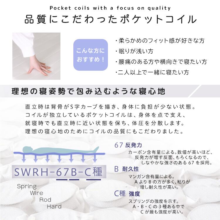 クッション材:ポケットコイル、ウレタン、フェルト、不織布