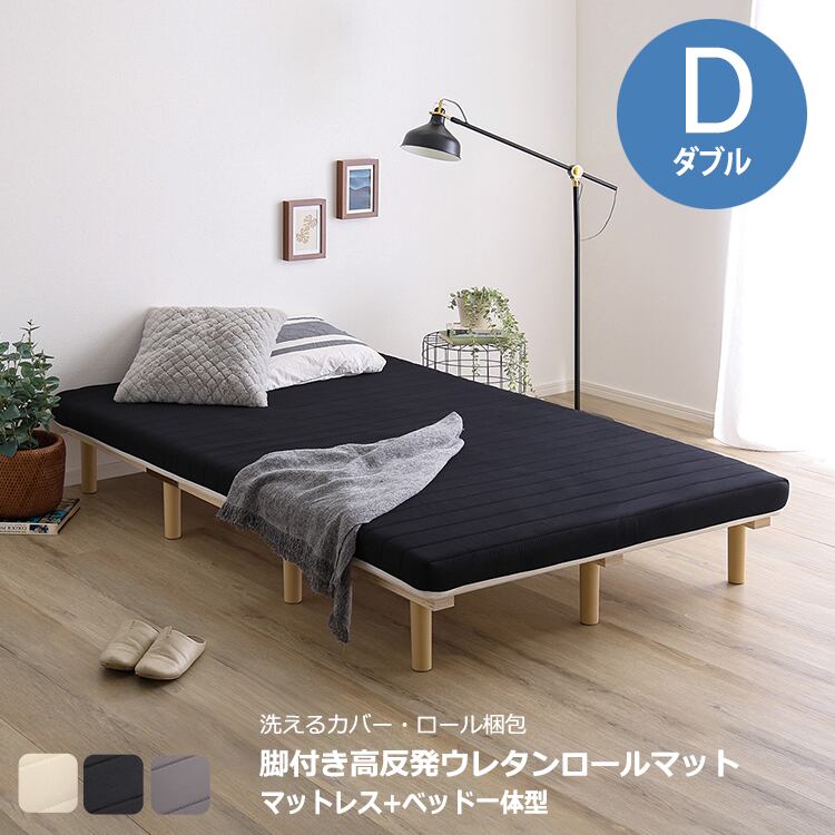 ベッド 脚付きマットレスベッド 高反発ウレタンマットレス ダブル SPIM しっかりかため 全3色 すのこベッド一体型
