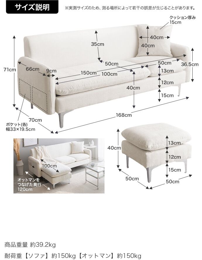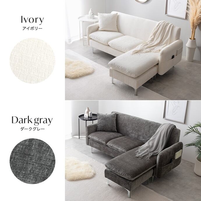 ソファ カウチソファ NAAB 3人掛け SOFA アイボリー ダークグレー 幅168cm 布張り クッション付 コンパクト 三人掛け 北欧インテリア