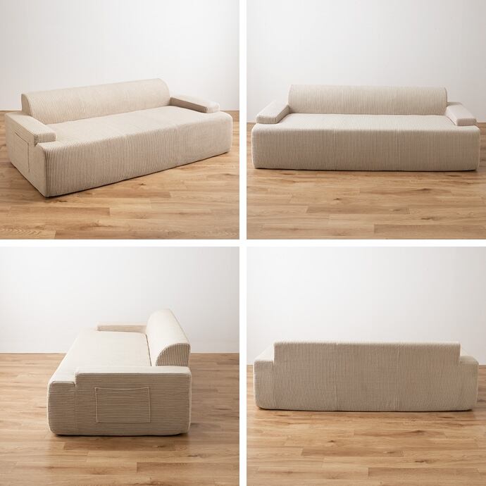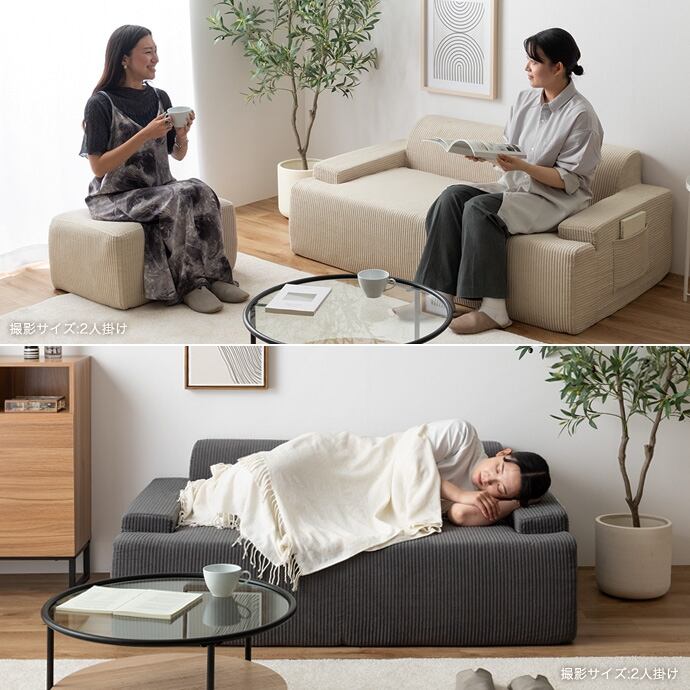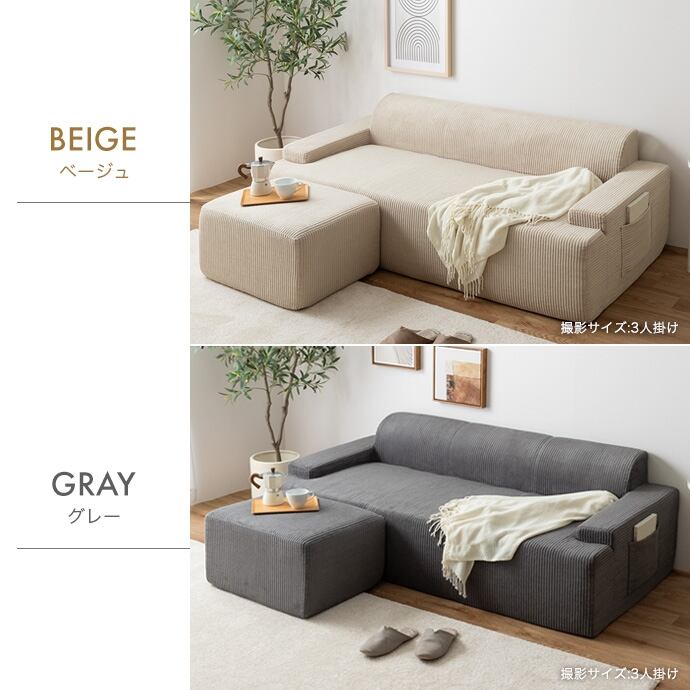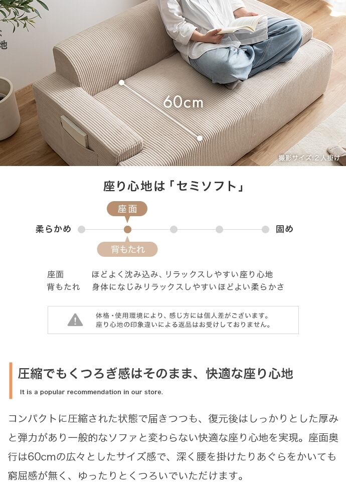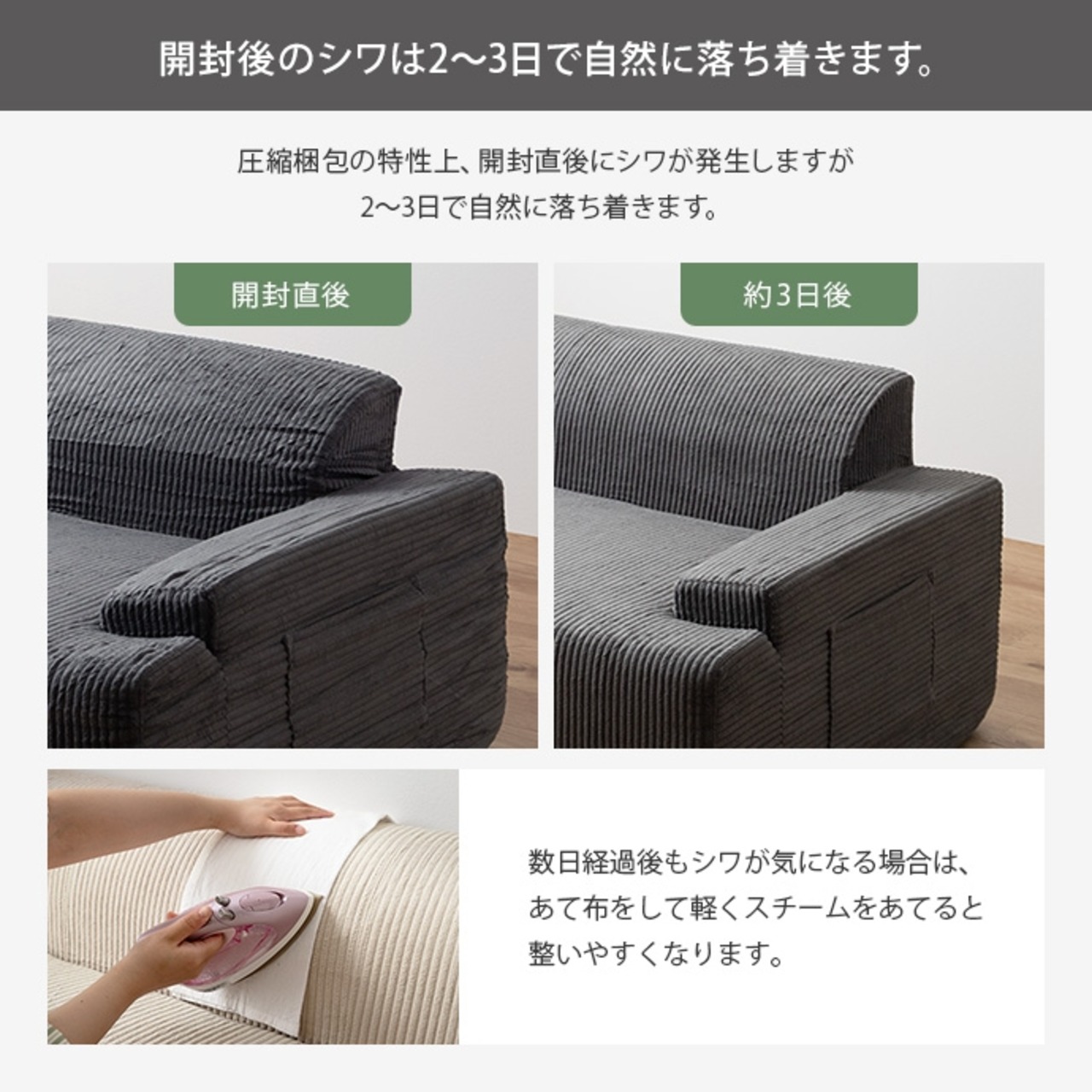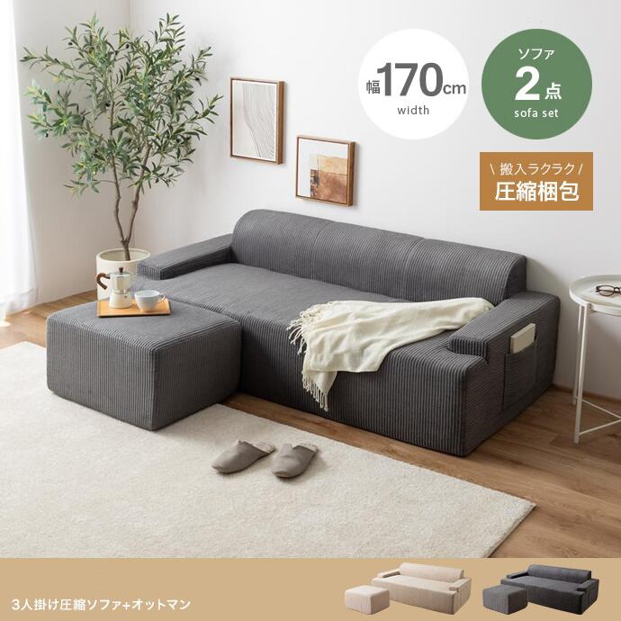 小さく届いて広々使える、快適圧縮ソファ+オットマンセット。