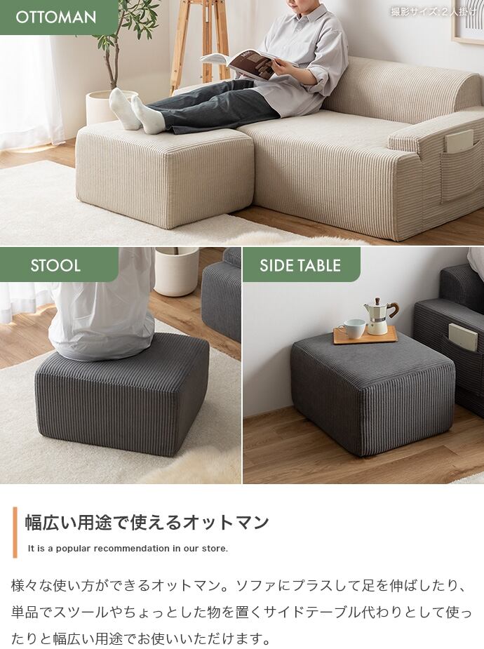 小さく届いて広々使える、快適圧縮ソファ+オットマンセット。