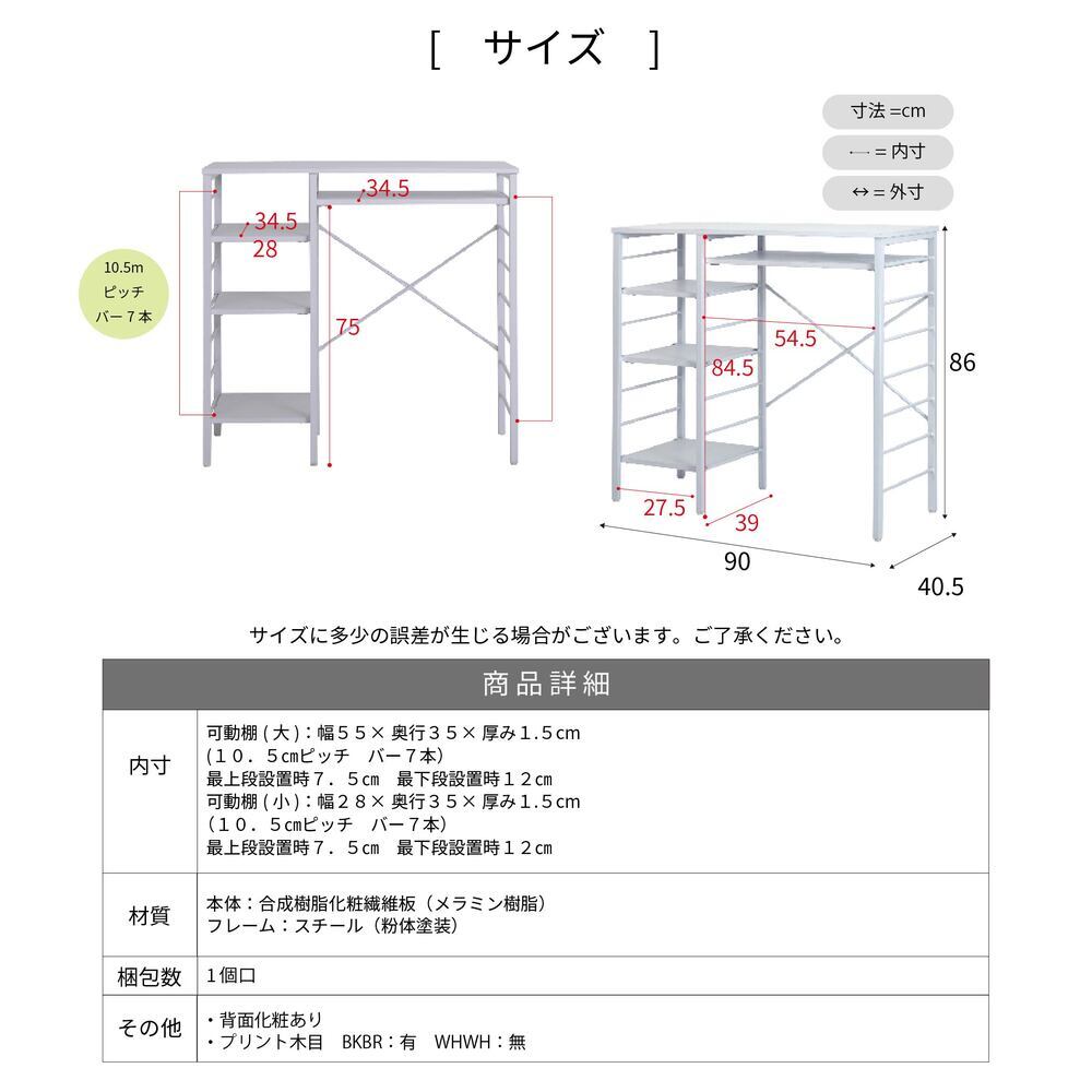 キッチンカウンター ゴミ箱上ラック キッチンラック 食器棚 幅90 奥行40 高さ85 レンジ台 間仕切り 棚 スリム ラック 作業台 食器 家電 収納 天板 ホワイト