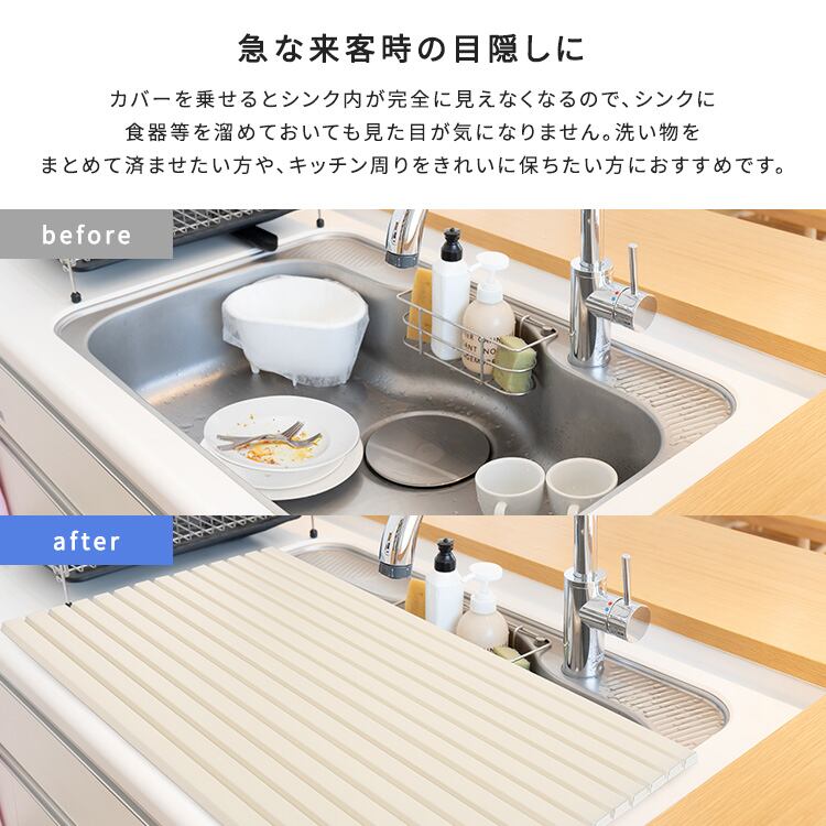 一時的にキッチンシンク用目隠しカバーをすることでリビングのインテリアもキレイに保ちます。