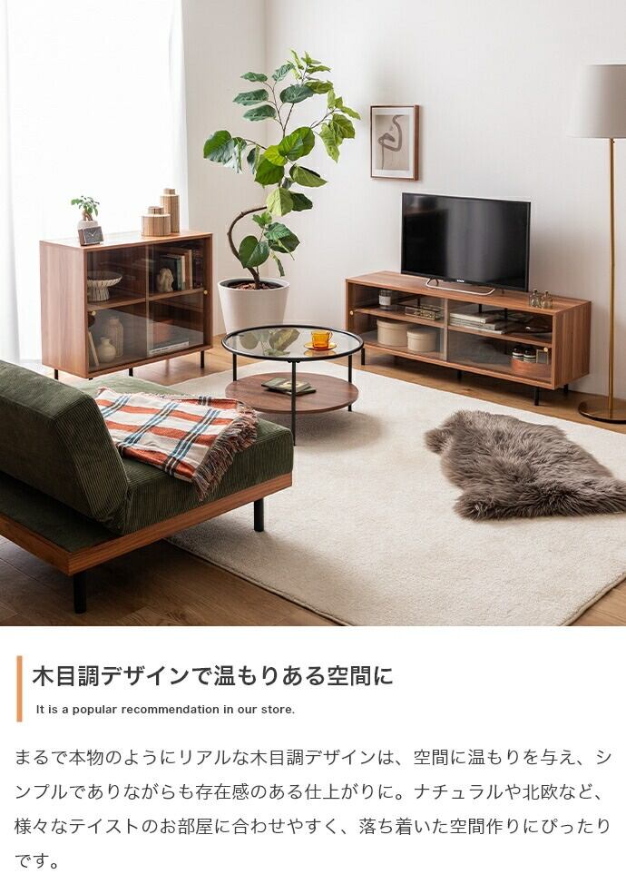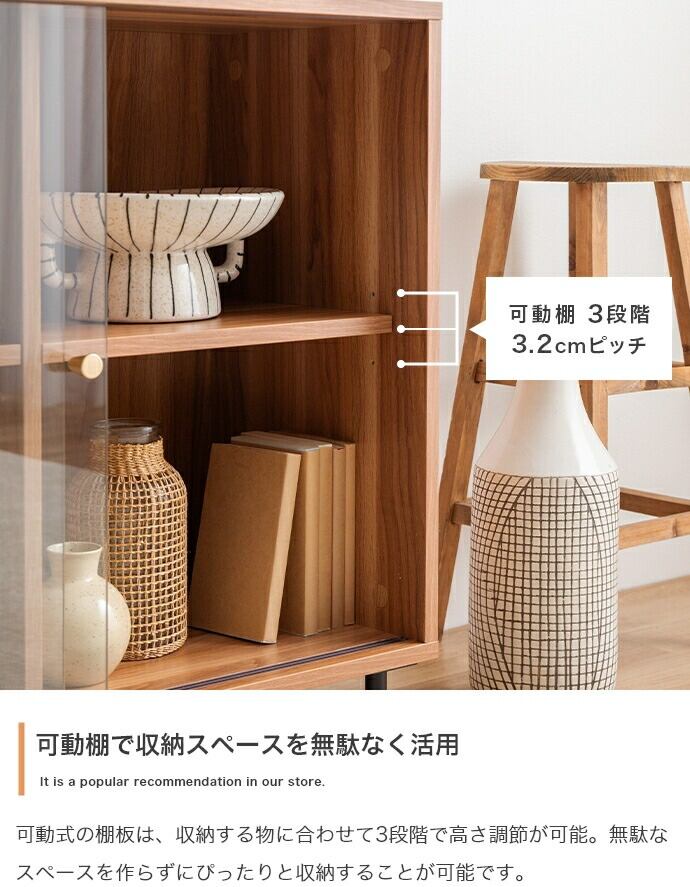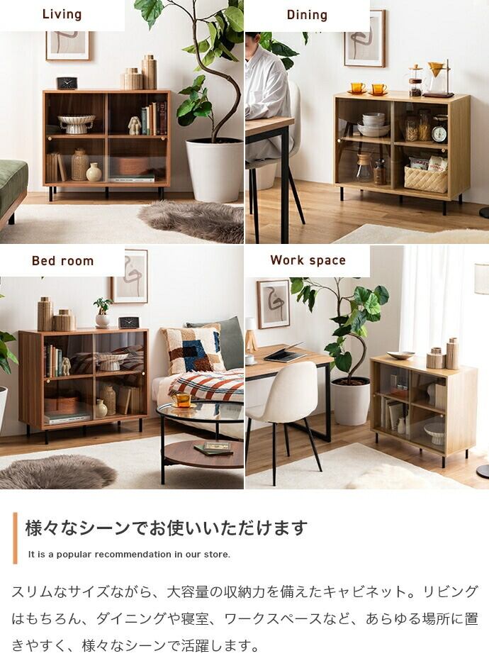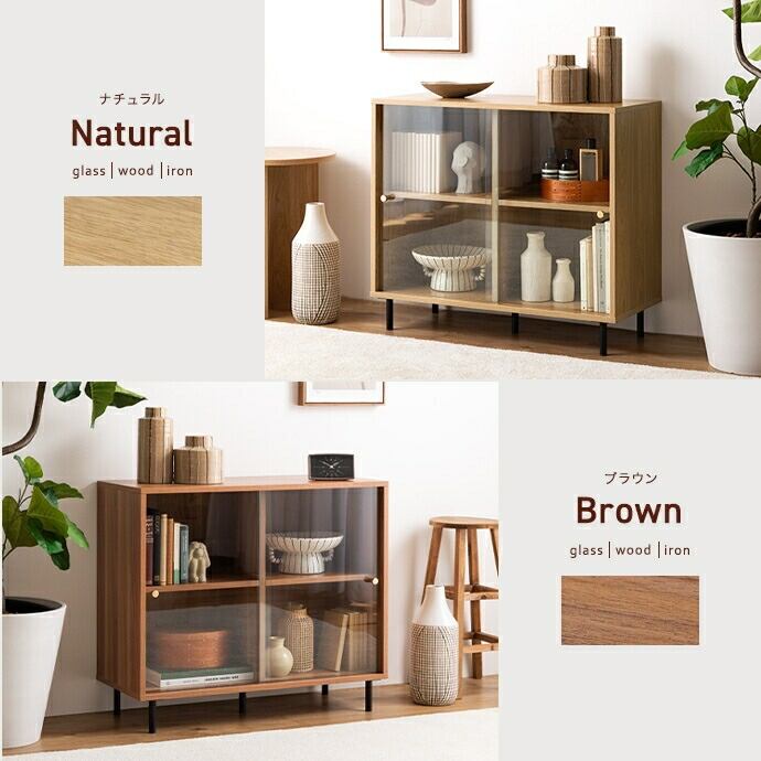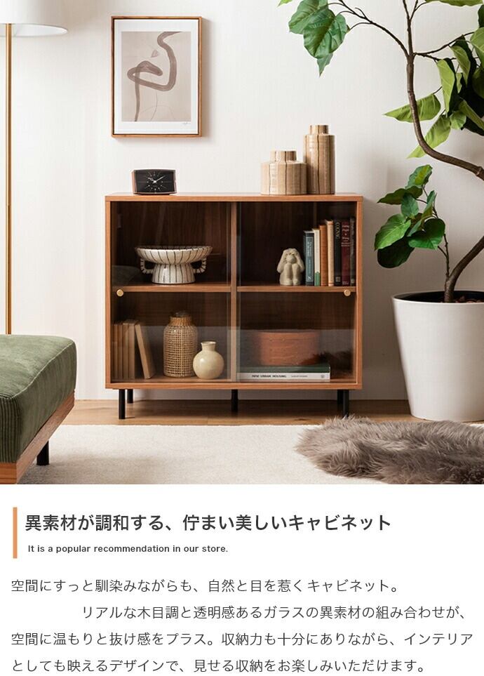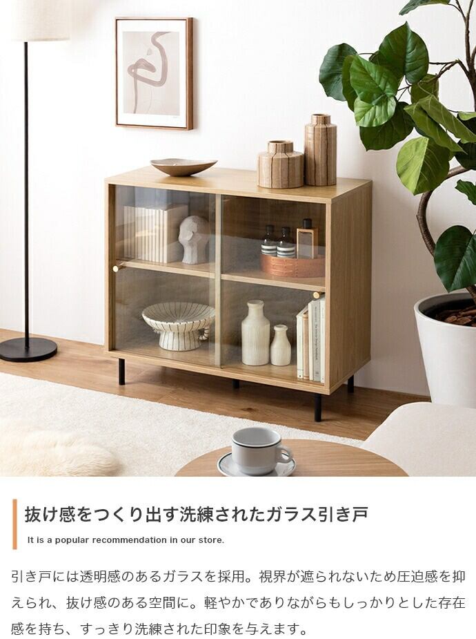 キャビネット RARA 80cm幅 ガラス 引き戸 木目 ローボード ロータイプ 収納 本棚 北欧 リビングボード リビング収納 ハイタイプ おしゃれ ナチュラル 戸棚
