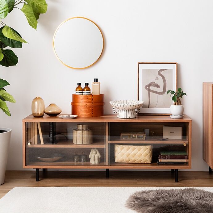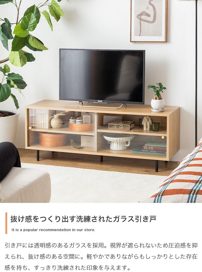 十分な収納力とインテリアとしても映えるデザインで、テレビ周りを美しく整えます。また奥行は35cmとスリムなサイズ感で圧迫感なく置くことができるため、空間を広く見せることが可能です。