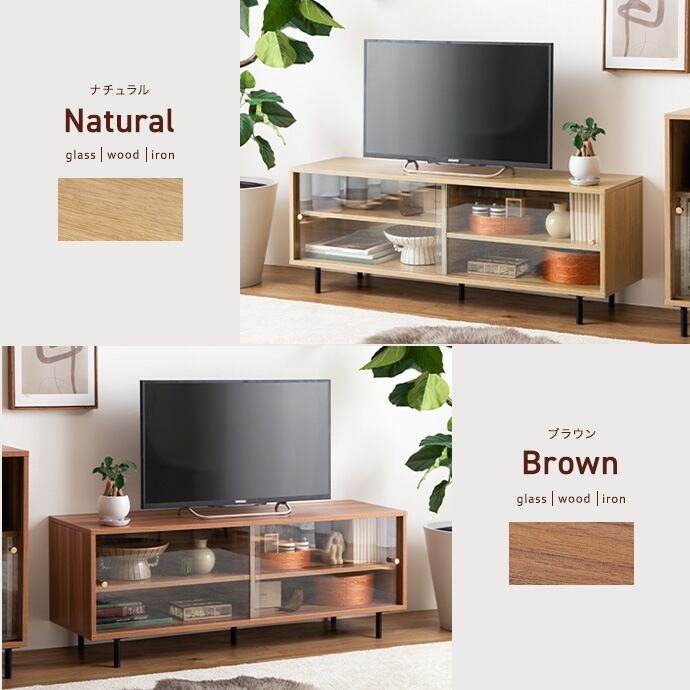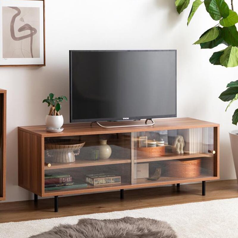 テレビ台 テレビボード RARA 120cm幅 ガラス戸 木目 リビングボード 組み立て品 ローボード ロータイプテレビ台 北欧