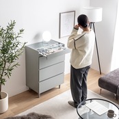 チェスト 60cm幅 ガラス天板ショーケース タンス 収納家具 Nana 白 グレー おしゃれ リビング リビングチェスト 引出し ロータイプ コンパクト 一人暮らし