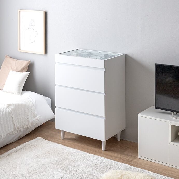 コンパクトチェスト ソファサイド ベッドサイド マガジン収納 リモコン収納 引き出し付き 3杯 ローテーブル ナイトテーブル ベッドルーム ひとり暮らし モダン 北欧テイスト 白 大理石 可愛い シンプル ワンルーム かわいい おしゃれ
