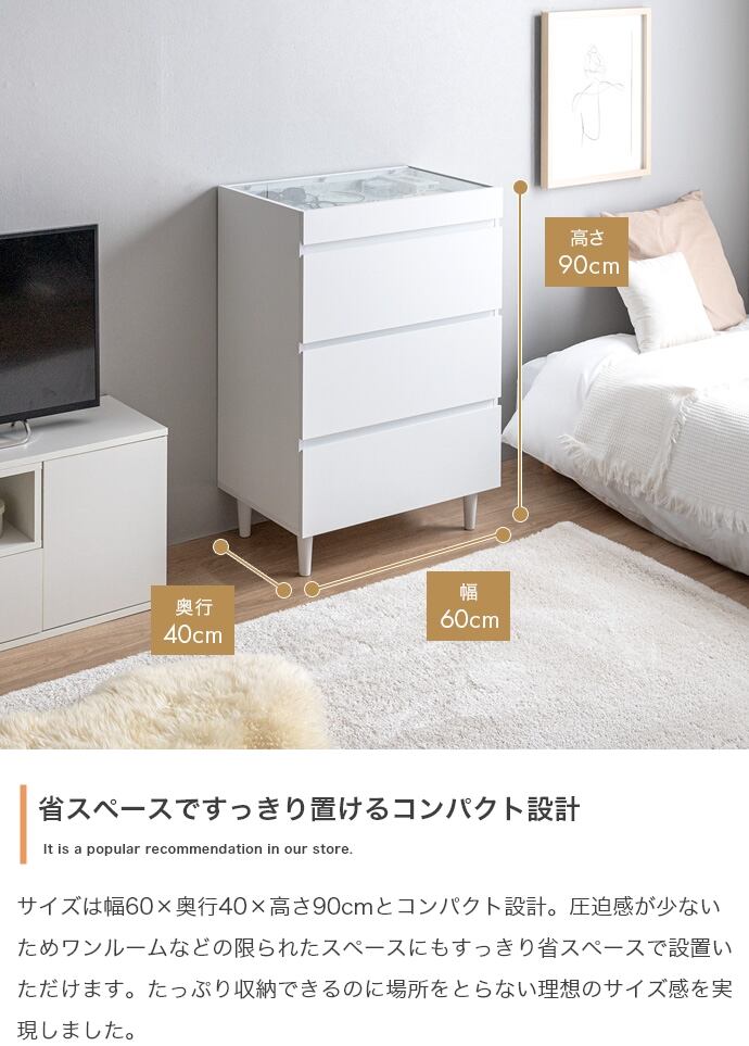 コンパクトチェスト ソファサイド ベッドサイド マガジン収納 リモコン収納 引き出し付き 3杯 ローテーブル ナイトテーブル ベッドルーム ひとり暮らし モダン 北欧テイスト 白 大理石 可愛い シンプル ワンルーム かわいい おしゃれ