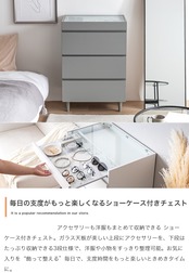 アクセサリーも洋服もまとめて収納できるショーケース付きチェスト。