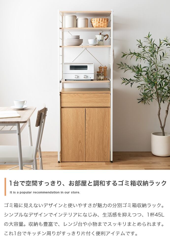 ゴミ箱に見えないデザインと使いやすさが魅力のゴミ箱付きキッチンラック。