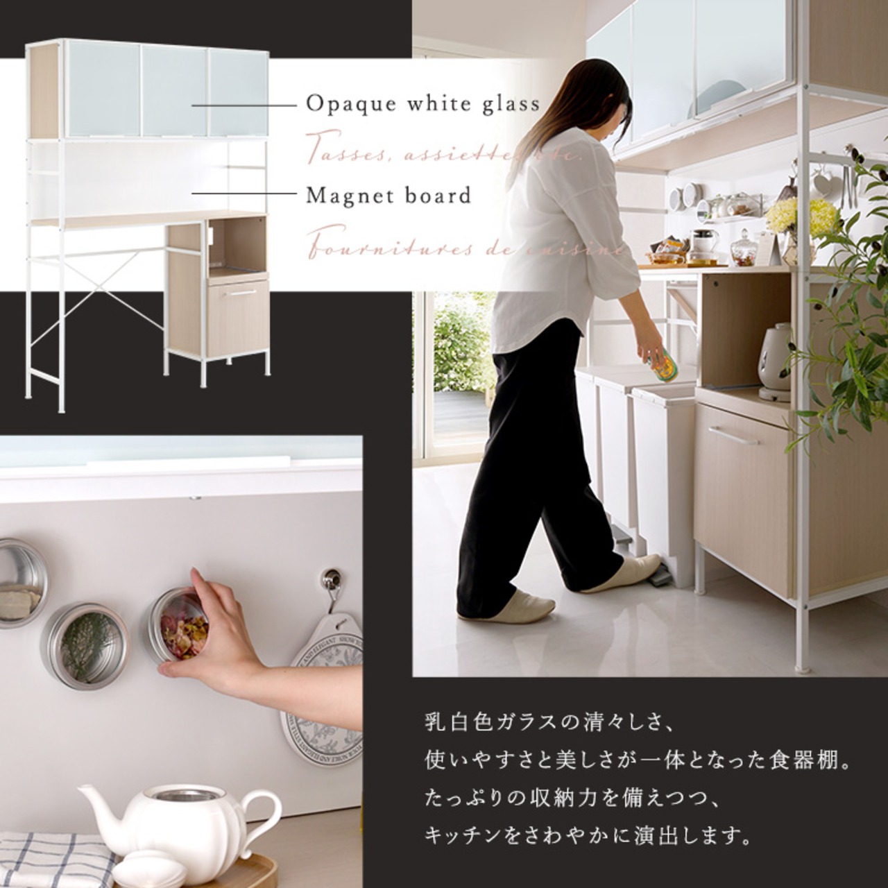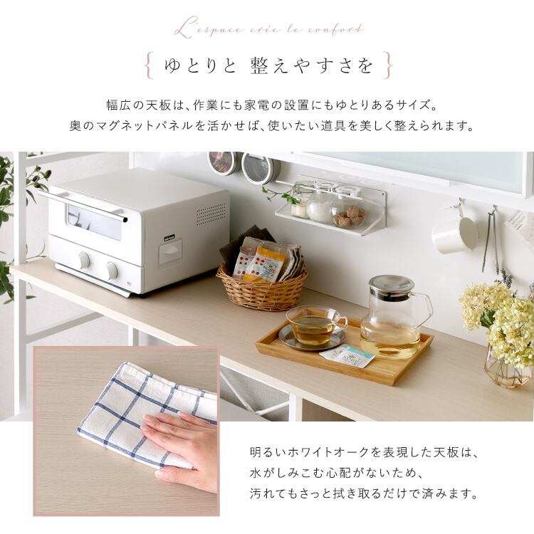 レンジ台 ごみ箱上ラック 幅93cm マグネット収納 ホワイトガラス 木目調 食器棚 キッチンラック レンジ台 FAS シンプルナチュラル