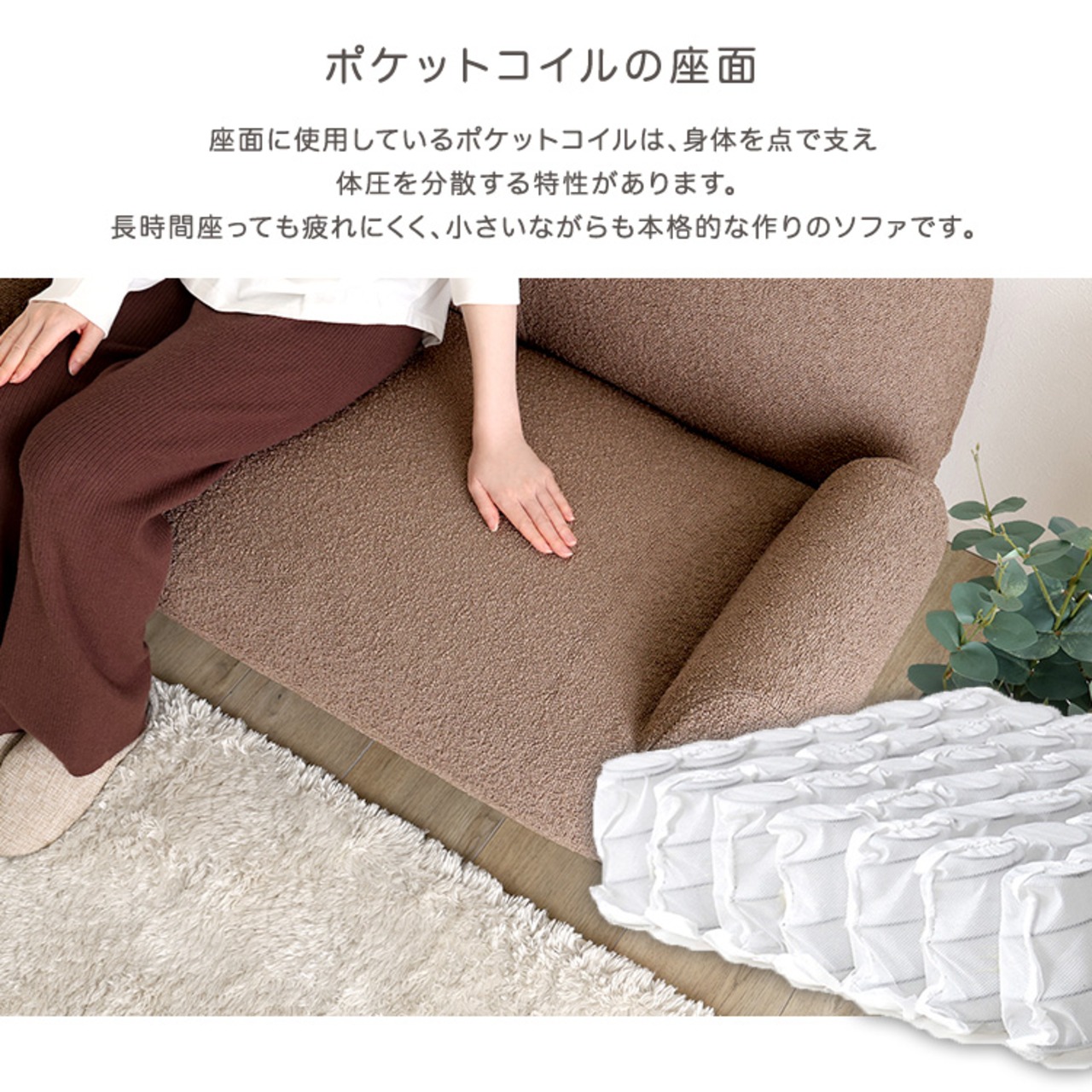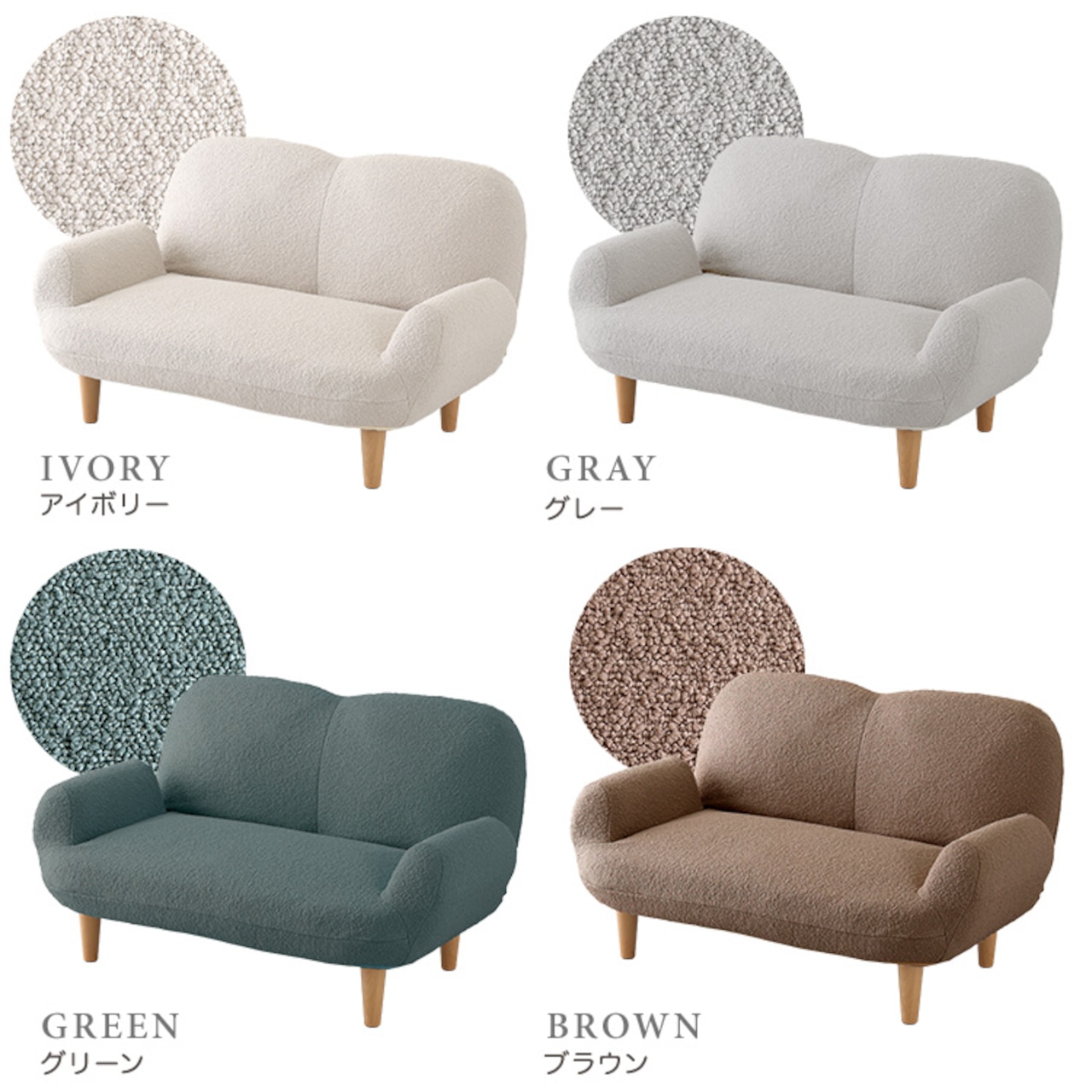 ソファ 2人掛け かわいい モコモコとした柔らかい肌触りブークレ生地 布張り ブラウン色 全4色 脚取外しOK フロアソファ