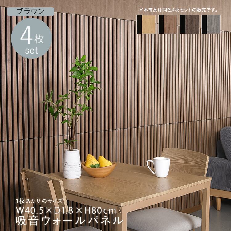 ウォールパネル 4枚セット 吸音 天然木化粧板 フリーカット タテヨコ ブラウン色 全4色 DIY 腰張り アクセント