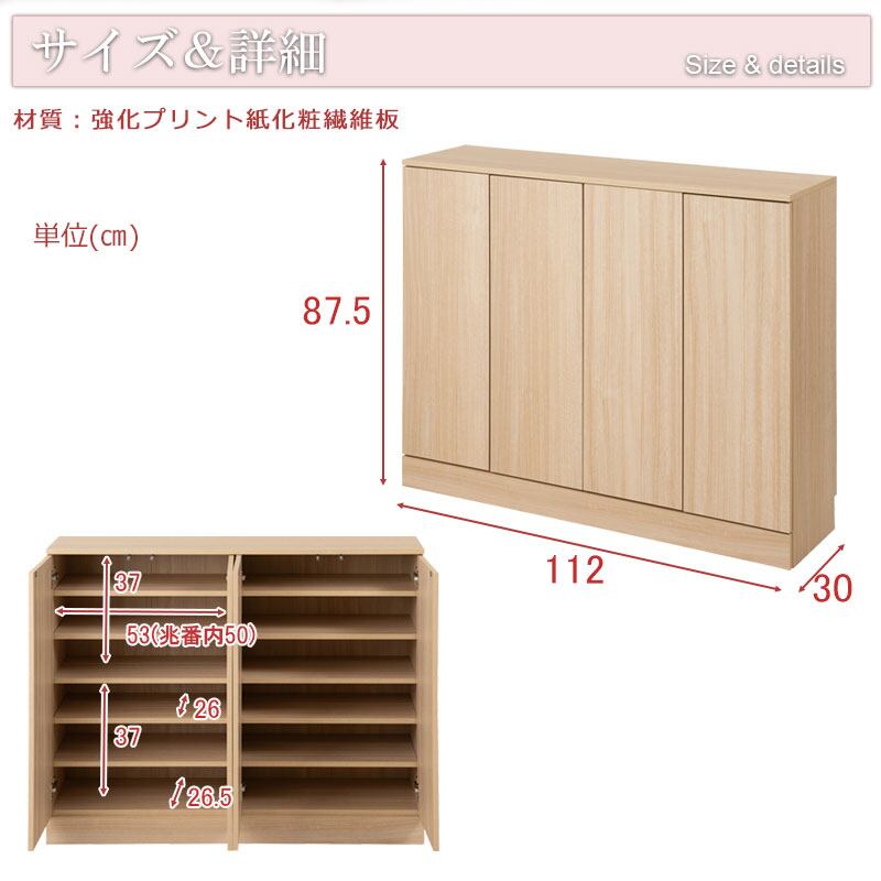 ■扉内寸(左右共通)/(約)幅53(兆番内50)×奥行26.5(棚板26)×高さ37(固定棚挟み上下共通)cm
