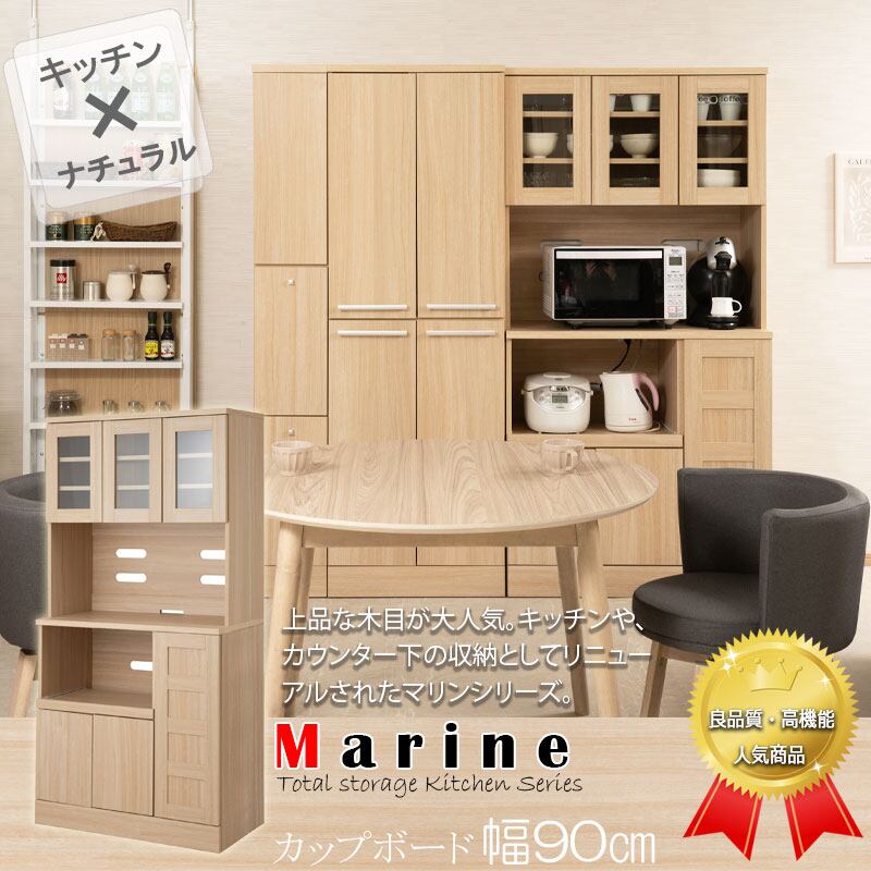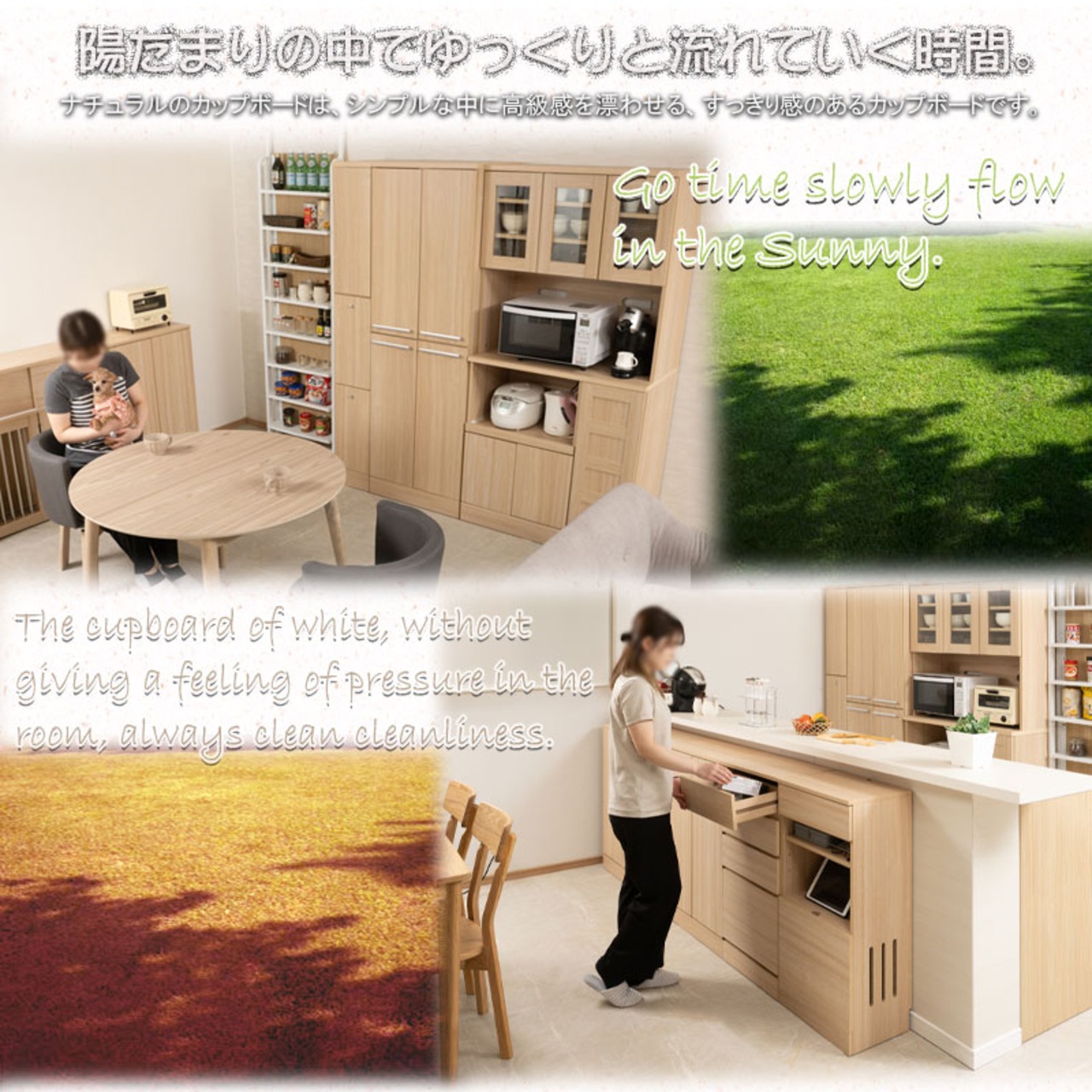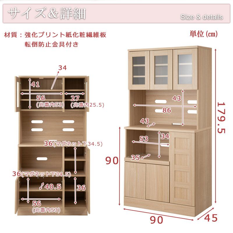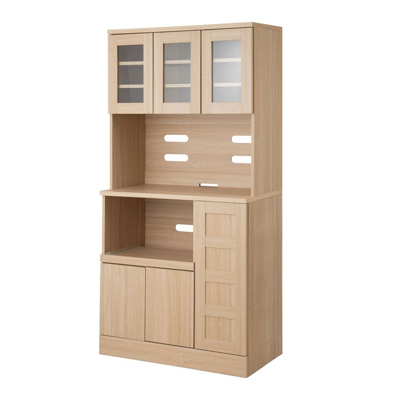 食器棚 カップボード 幅90cm ナチュラル キッチン収納 北欧 スライド レンジ台 コンセント付 大容量 キッチンラック おしゃれ ダイニングボード main