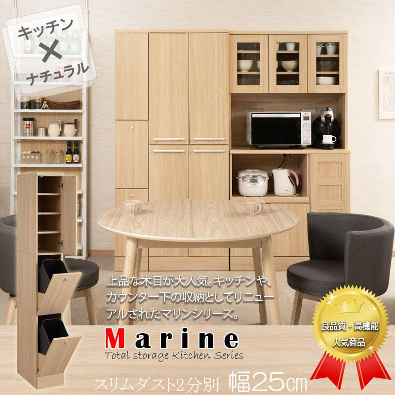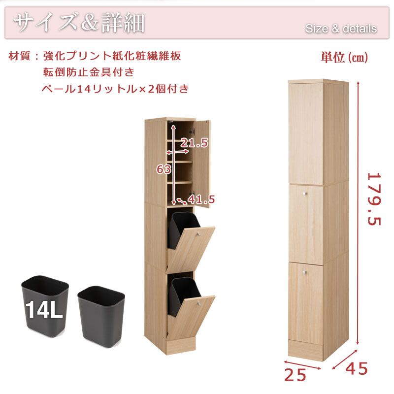 キッチンラック ダストボックス 2分別 幅25cm ナチュラル キッチン収納 省スペース すきま ゴミ箱 ダスト ボックス 14L レンジラック 小物収納 ごみ箱 main