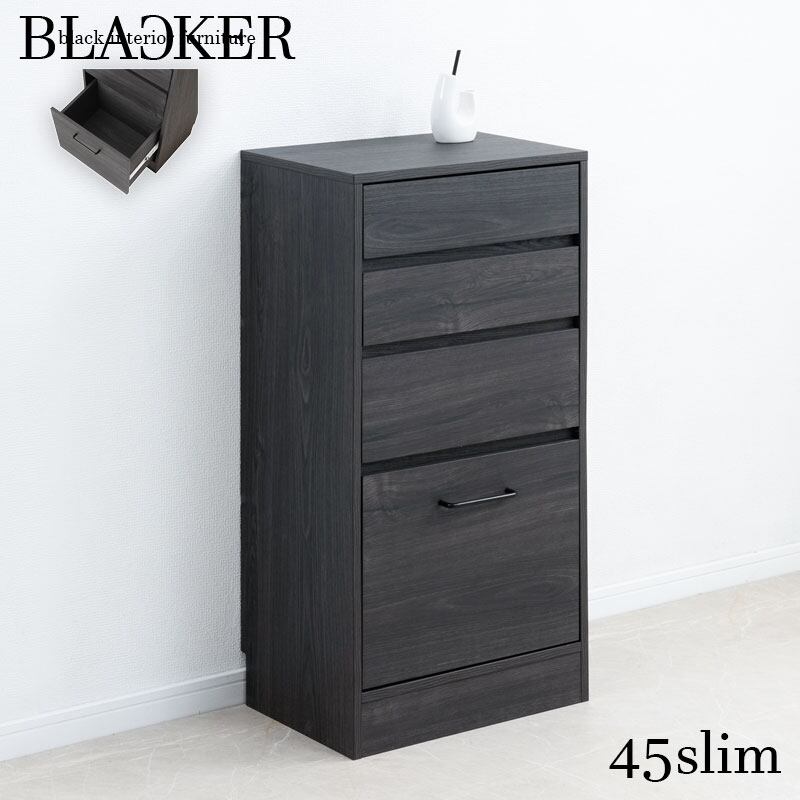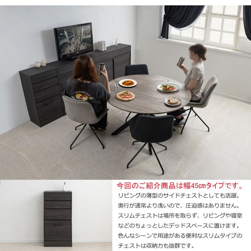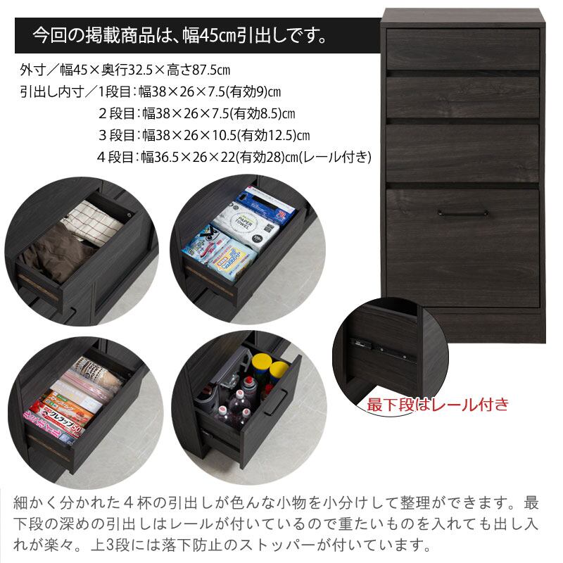 チェスト カウンター下収納 幅45cm 4段 ブラック 背面化粧仕上げ すきま ラック サイドボード 窓下 引出し 引き出し タンス ランドリー グレー 黒木目