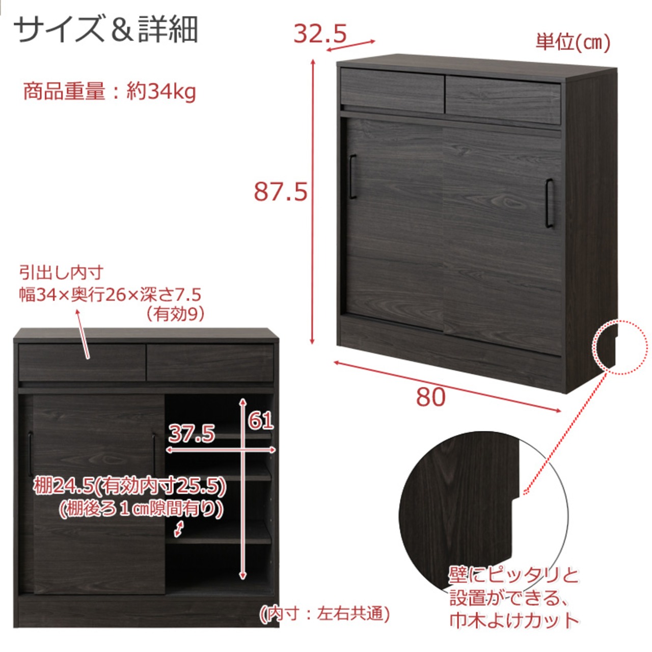 ■商品サイズ/本体:(約)幅80×奥行32.5×高さ87.5cm